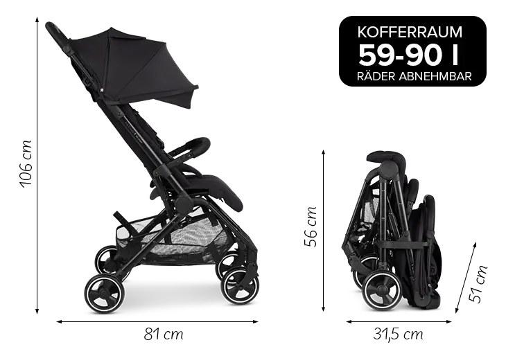 Notre poussette de voyage Ping 3 Travel est compacte et peut être emportée en avion comme bagage à main. Cependant, la taille maximale autorisée du bagage à main peut varier en fonction de la compagnie aérienne. Veuillez donc vérifier les dimensions actuelles des bagages à main et les directives de votre compagnie aérienne avant votre voyage afin de vous assurer que la poussette compacte répond aux exigences.