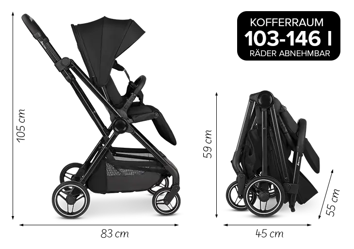 Grâce aux grandes roues de trekking à l'arrière et à la suspension individuelle des roues, la poussette sport vient facilement à bout de différents terrains. Le siège convertible te permet de faire rouler ton enfant vers l'avant ou vers l'arrière - parfait pour découvrir le monde ensemble ou pour offrir à ton enfant un sentiment de sécurité grâce au contact visuel. Pratique : le S Two peut même être plié avec l'unité de siège - que le siège soit tourné vers toi ou vers l'avant.
