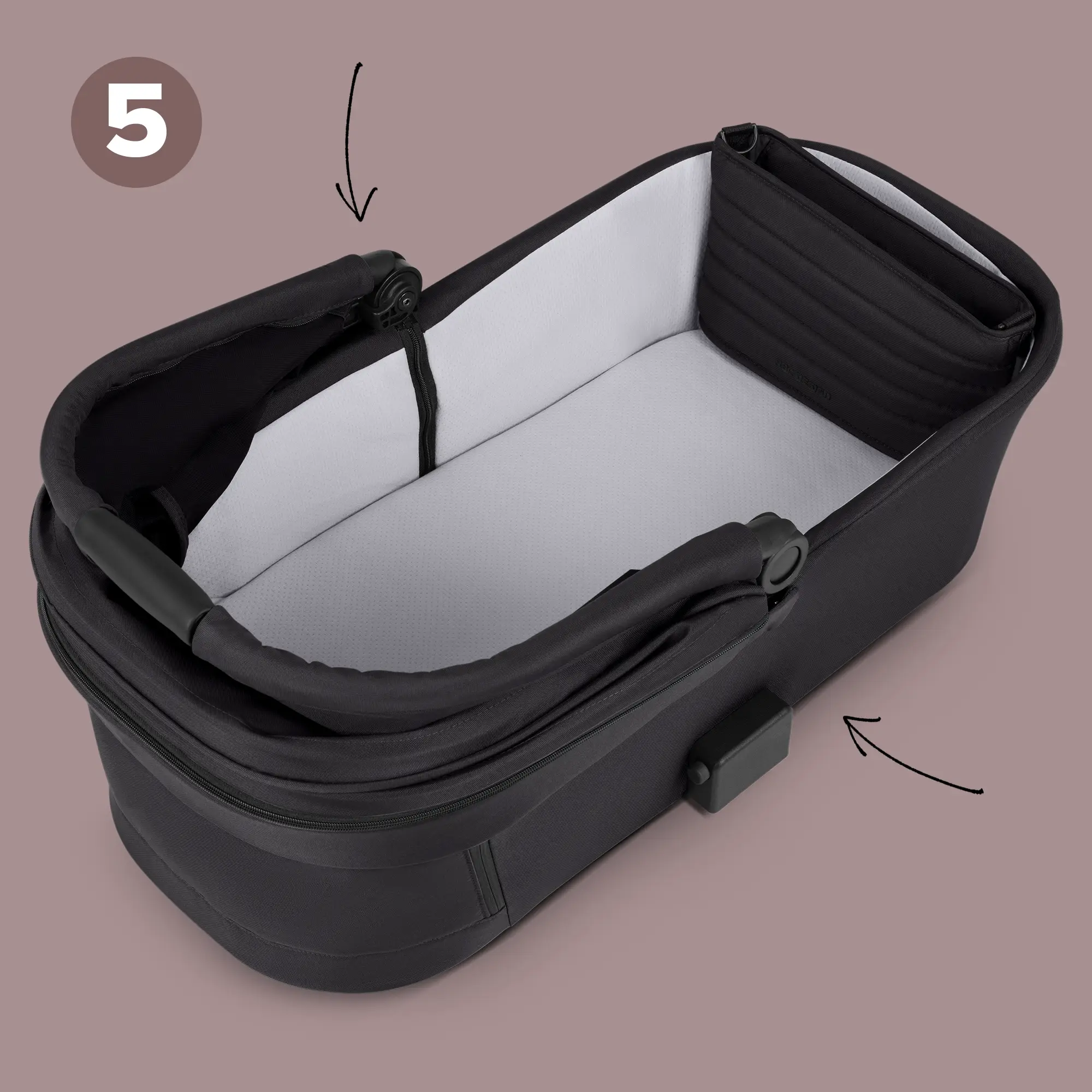 La nacelle en option du Salsa 5 Run est désormais encore plus facile à plier. Sous la nacelle, vous trouverez 2 leviers qui vous permettront de la déverrouiller facilement, puis de la replier. Grâce aux pièces de connexion révisées sur le côté, la nacelle est désormais nettement plus plate. Avec l'ancienne nacelle, vous deviez retirer le matelas à l'intérieur et déverrouiller les deux étriers métalliques pour la plier. Ce n'est désormais plus nécessaire, ce qui rend son utilisation beaucoup plus pratique.